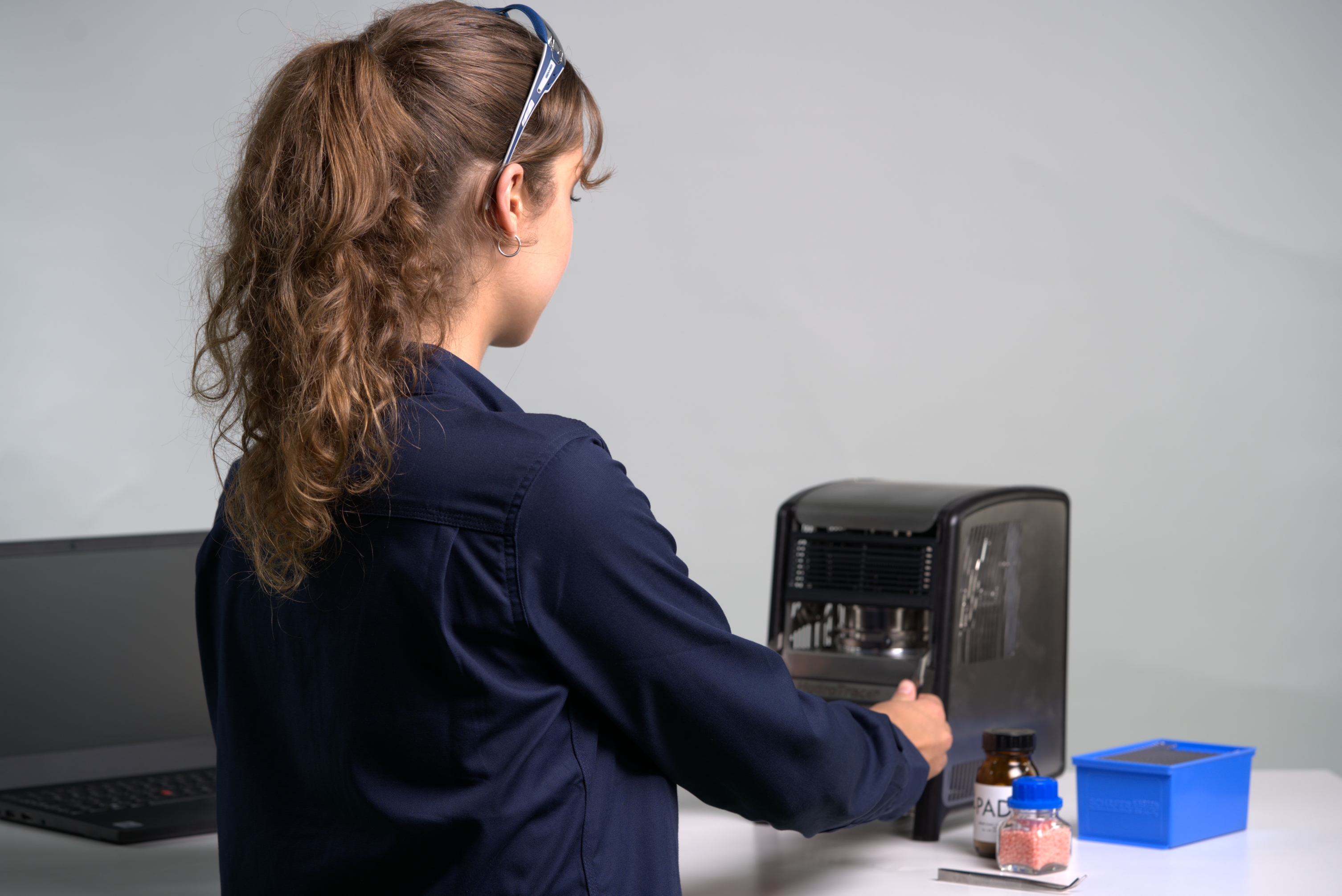 Flüssigkeiten können nicht gemessen werden. Die Messung ist auf feste Stoffe beschränkt, wobei das Material in Form von Granulat, Pulver oder Flocken vorliegen kann. Auch Folien, Fasern oder dünnwandige Spritzgussteile sind messbar.